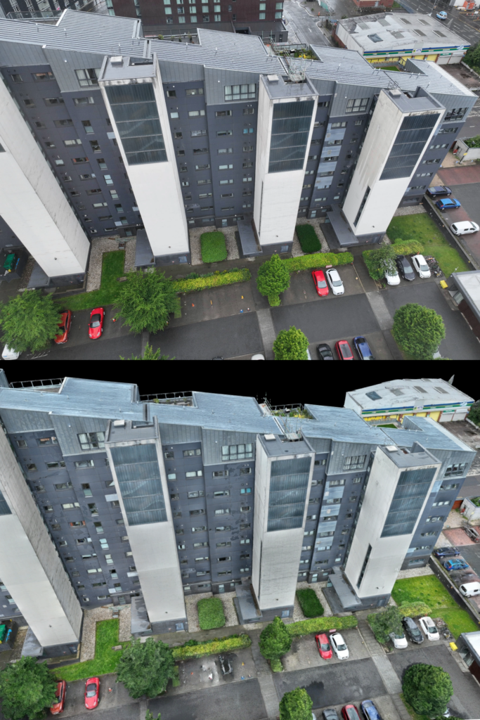 Reliable, controlled point cloud data ensures correct levels for setting out, while drone insights highlight external condition issues early (e.g. cladding, roof condition), minimising design errors and rework by giving teams a true-to-life model to work from.What Our Client Received: