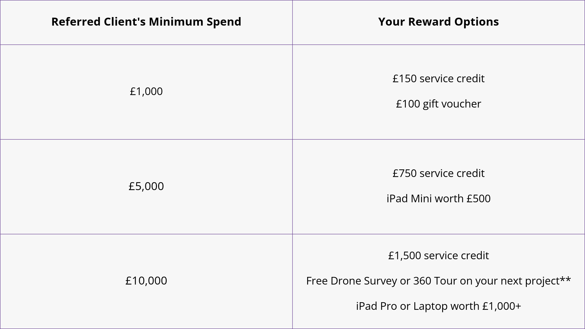 Rewards can be taken as gift vouchers, service credit or selected premium items, depending on project value – the choice is yours!